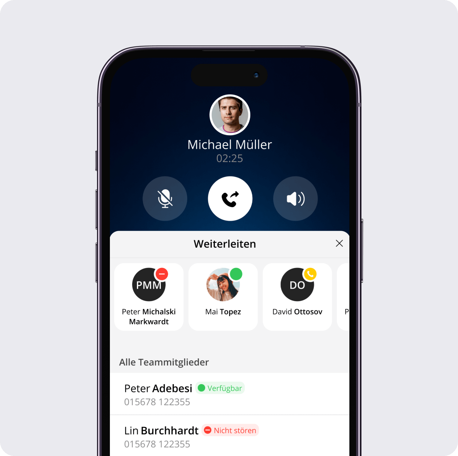 Chris: Mein Lieblingsfeature ist eins, das den Nachteil des kalten Transfers ein bisschen abmindert. Man sieht über einfache Ampelfarben, ob eine Person aus meinem Team gerade überhaupt erreichbar ist. Die Wahrscheinlichkeit, dass die Gegenstelle bei einem transferierten Anruf nicht rangeht, wird damit viel geringer.